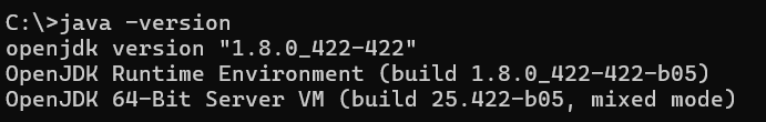 After installing make sure that you add /bin folder to the environment path variable list. On my system location is this one: "C:\Program Files\Java\openjdk-8u422\jre\bin". You can access Environment Variables like this: System properties -> Advanced -> Environment Variables -> System Variables -> New