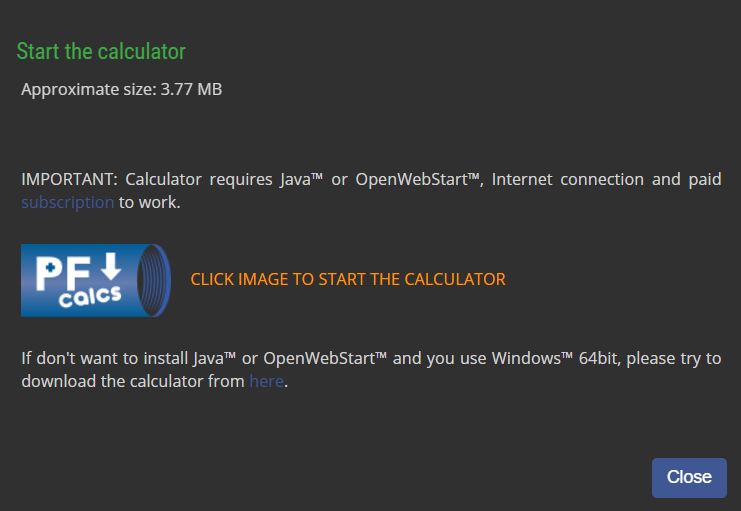 The following information is suitable for the calculator deployment as Java Web Start application. If you are using online calculators, or you are using a Windows 64bit operating system, and you have downloaded and installed the calculator on your computer, then the following instructions are not related to you.